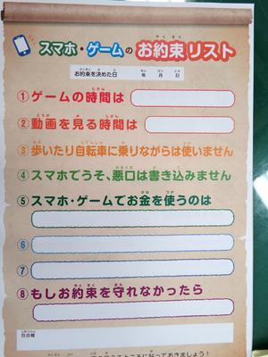 小中学生が関わったオンラインゲームでの課金トラブルの事例も紹介して頂き、「決してそれらのトラブルが他人事ではないことや家庭内でのルールをお家の人と話し合うことの大切さ」を学ぶことができました。用意して頂いた「スマホ・ゲームのお約束リスト」に書き込むことによって、学習したことを自分たちのこれからの生活にいかすことができそうです。