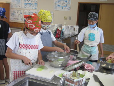 さて、今日は5年生が調理実習をしました。「ゆでる」学習です。野菜と卵をゆでました。