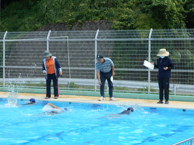今週はくもりの時間が多かったので、全学年プールに入ることができました。28日の水泳記録会に向けて練習を頑張っています。下は1,2年生の様子です。