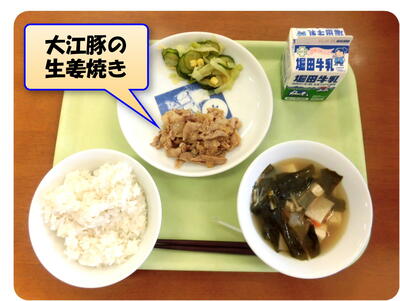 今日は、大江ピッグクラブから無償提供していただいた大江豚メニューの第2弾です。前回ピッグクラブの皆さんにおいで頂いたときお話を伺う中で、「重さをそろえてポークステーキのカットするには大変時間と手間がかかる。」ということが分かりました。食材の無償提供のみならず、天草町の子供たちのために労力も提供していただいていることに感謝しながらみんなでいただきたいと思います。