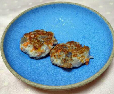 大江漁協のすり身は、びっくりするほど美味しいです。レンコンと人参を刻んですり身と合わせ、サラダ油で焼きました。