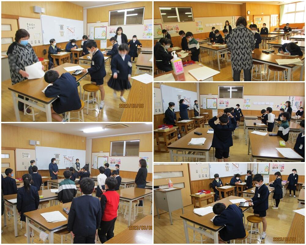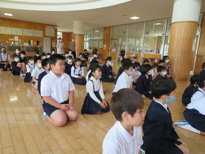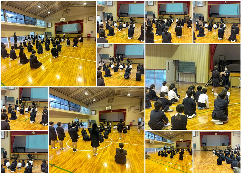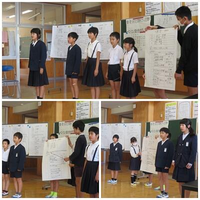 今週は校内人権週間です。その一つの取り組みとして、3時間目に人権集会がありました。児童会の運営委員さんたちが劇で問題提起をしてくれました。外国からやってきた女の子が昼休みに読書をしていて、みんなが外遊びに誘うのですが、「私は読書がしたい。」と言って誘いに応じてくれないという場面でした。「何が課題でどうしたらよいか。」を縦割り班に分かれ話し合い、班のリーダーが発表してくれました。いろいろな考え方が出されましたが、みんなで人権について深く考えることができました。それから「天草小なかよしのちかい」をみんなで確認し、今月の歌「♪友だちになるために」を唄って閉会しました。そのあと学級に帰り、まとめを行いました。
