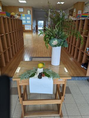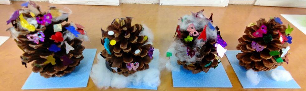 2年生は米松の大きな松ぼっくりを使ってクリスマスツリー(クリス松ツリー?)を作っていました。仕上がりがとてもきれいで、子供たちも満足していたようです。明日は家に持って帰ります。お楽しみに!