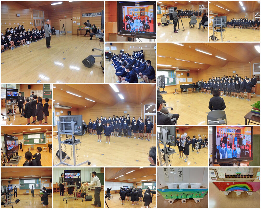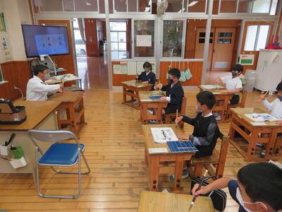本日、五木東小学校とのリモート交流がありました。交流が始まって5年目となります。平成30年には夏休みに天草小から五木村に5・6年生が行きました。令和元年には五木東小学校から天草町に来て頂きました。しかし、令和2年度からはコロナ禍で直接交流ができなくなり、リモート交流となりました。今年度は、天草小から行く予定でしたが、やはりコロナウイルスの感染拡大により直接交流が中止となり、リモート交流となりました。今日は福連木の子守唄と五木の子守唄をお互いの学校が披露しました。また学習したことや地域の特産品の紹介を行いました。また、夏の交流で作るはずだった檜の椅子の材料をもらって5・6年生がおうちのかたと作ったことを紹介したり、五木東小から送って頂いたプランターボックスのお礼を言ったりしました。平成5年度は、リモートでなく、実際の交流ができることを願っています。五木東小の皆さん、五木村役場の皆さん、天草町地区振興会のみなさん、天草支所の皆さん大変お世話になりました。