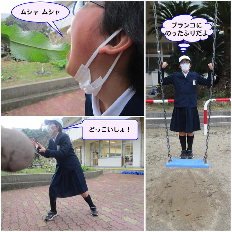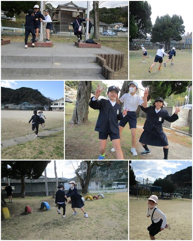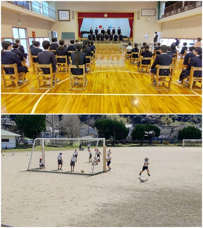 昨日の入学式に合わせて、御祝いメッセージも作成いただきました。子供たちは昼休み、元気に外で遊んでいます。