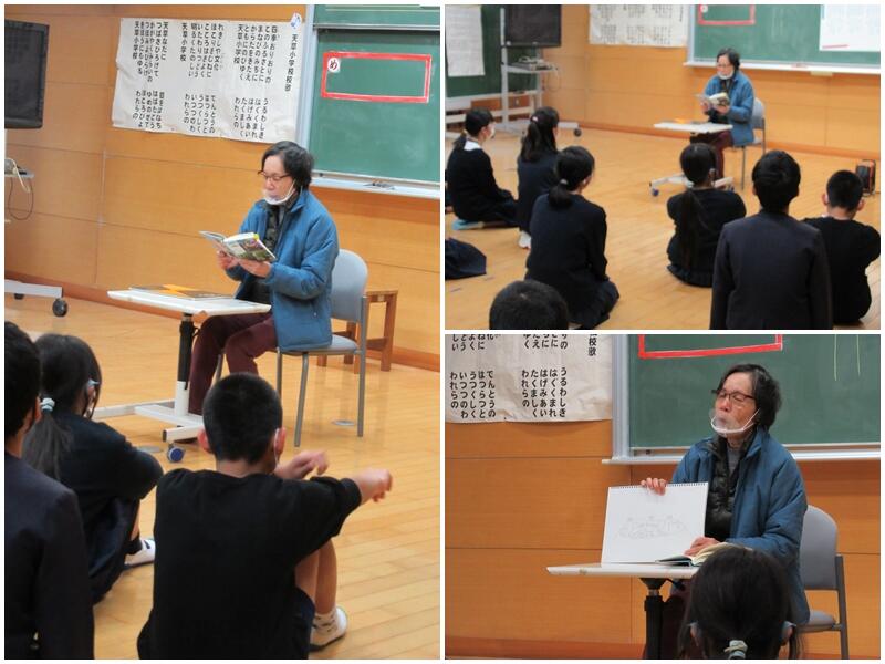 今日は、1・2年生の読み聞かせでした。葛籠貫さんに持ってきていただいた本は、「ごめんね ともだち」でした。キツネと初めて大げんかをしたオオカミは、仲直りがしたいのに「ごめんね」と心の中では言えるのに、口に出して言うことができません。・・・・・・といったお話です。この本の作者は内田麟太郎さんです。偕成社のホームページで調べてみると、内田さんは1941年福岡県大牟田市のお生まれです。『さかさまライオン』で絵本にっぽん賞受賞、『がたごとがたごと』『すやすやタヌキがねていたら』で日本絵本賞受賞、『うそつきのつき』で小学館児童出版文化賞受賞という輝かしい受賞歴です。その他にも詩集『ぼくたちはな く』で三越左千夫少年詩賞を受賞されていました。ほかの主な作品は「ワニぼう」シリーズ、『十二支のおはなし』、「おれたち、ともだち!」シリーズなど多数あります。葛籠貫さん、いつもよい本を読み聞かせしていただき、ありがとうございます。