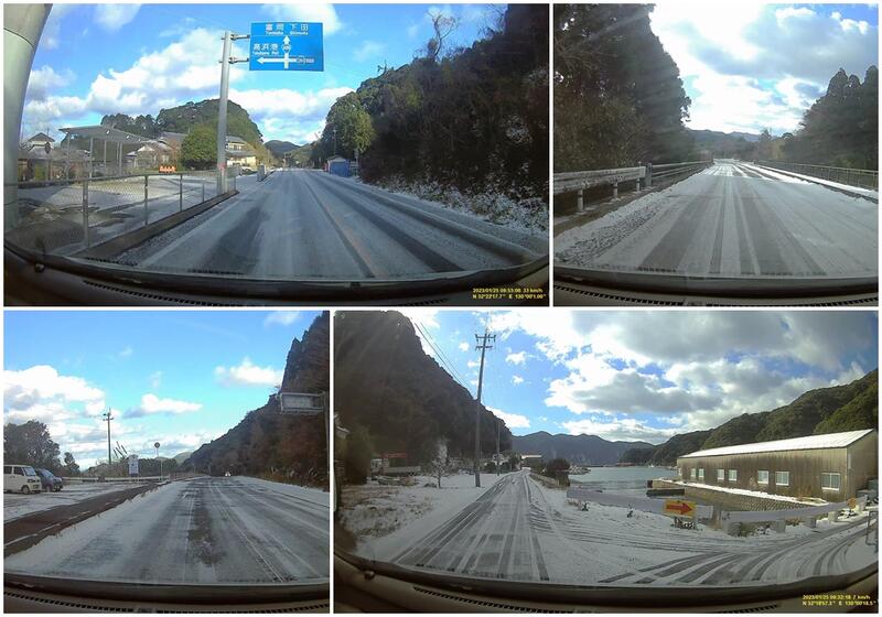昨日から天草地方にも雪が降り始めました。長くは降り続かなかったものの、山も雪化粧でした。児童の安全に配慮し、本日は2時間の遅延登校となりました。天草でも山間部は昨日降った雪が解けきれず残っていました。ところが海辺では雪は完全に解けきっていました。こんなにも違うものなんだなと改めて思いました。下の写真は今朝の山間部の様子を事務の先生のドライブレコーダーからキャプチャーしたものです。