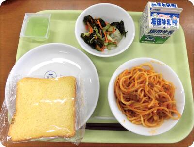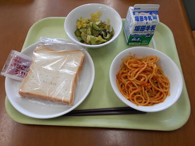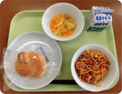 4月20日の献立は『食パン、ミートスパゲティー、海藻サラダ、イチゴジャム』でした。海藻サラダには、「わかめ」「こんぶ」「ふのり」「とさかのり」などの海藻がたくさんはいっていました。このような海藻をたくさん食べているのは世界でも日本と韓国ぐらいだそうです。海藻は、健康に欠かせないミネラルが入ったヘルシーな食材です。子供たちにたくさん食べて、元気になって欲しいという栄養士さんの愛情が感じられる一品でした。ミートスパゲティーも懐かしい味がしてとてもおいしかったです。