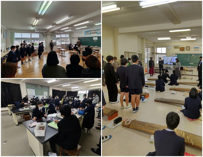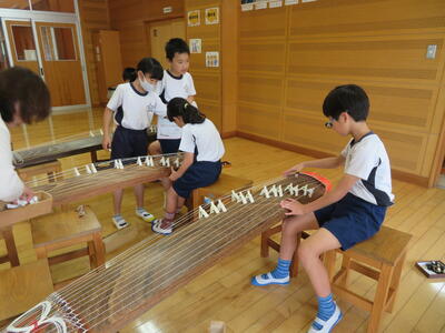 子供たちはきれいな音色を楽しみながら練習することができました。この箏は天草中学校からお借りしています。
