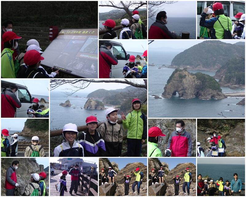 天草市の「天草自然学習見学支援事業」を活用して、本日6年生が大江の須賀牟田海岸の地層や化石などを観察する学習を行いました。天草市学芸員の鵜飼さんに今年もお世話になり、詳しく教えて頂きました。11月25日には学校で事前学習もさせていただいたので、ある程度の知識は得ていたものの実際に現地学習することで実感を伴った理解ができました。鵜飼さん、貴重な体験をさせて頂きありがとうございました。