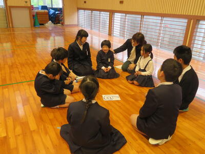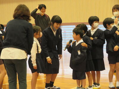 3時間目は一年生を迎える会です。運営委員さんたちが、進行し、縦割り班ごとに自己紹介をしたり、ゲームをしたりと楽しい時間になりました。