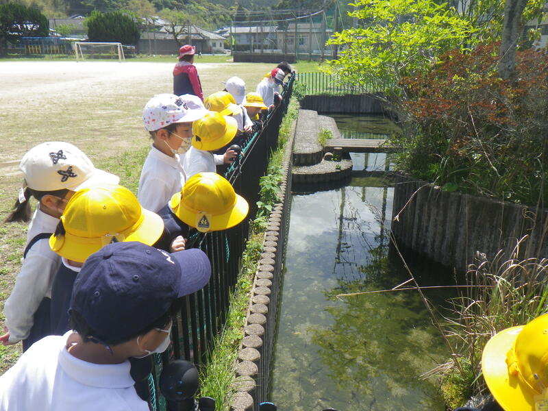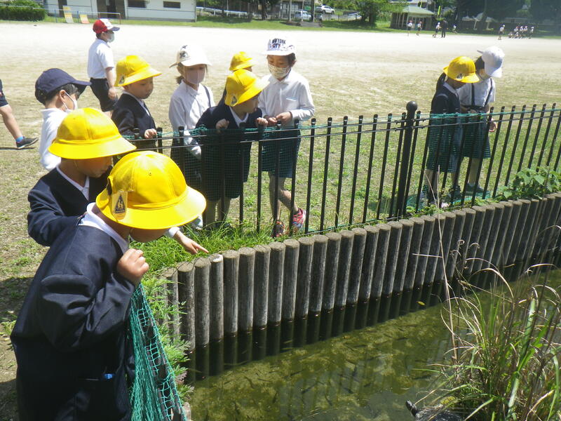 こいこい池にたくさんの魚が泳いでいることを知って、1年生も大喜びでした。