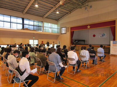 今日は本年度一回目の授業参観、PTA総会、学級懇談会でした。授業参観では、どの学級も明るく元気な声が聞こえていました。子供たちは手をたくさん上げて発表していました。PTA総会では、会長あいさつ、校長あいさつ。校長はその中で、毎年寄せられる学校からのアンケートへのお礼、そして三つのこと(SNSはルールを家庭で決めることについて、6月4日のレクイエム・プロジェクト参加の件、本年度からの通知表の件)を話しました。その後議長の西島さんの進行で議事が円滑に進みました。その後、会長の赤星さんより、夏休みのプール開放に向けた保護者協力について、教頭より保健関係について、ビーチスターエフシー監督の松本さんからクラブチーム(社会体育)への案内がありました。多くの保護者の皆様が来校いただきありがとうございました