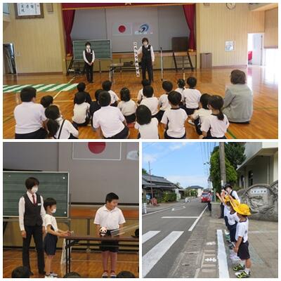 低学年、中学年、高学年に分けて交通教室を実施しました。講話を天草地区交通安全協会から江浦様、浜崎様、天草市交通指導員として、尾下隊長様、田中福連木支部長様、白石下田地区支部長様、宇土高浜地区支部長様、野田大江地区支部長様、駐在所より、後藤様(下田)、迫本様(高浜)、そして自転車の点検を福連木地区岩下商会様に大変お世話になりました。