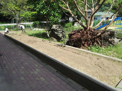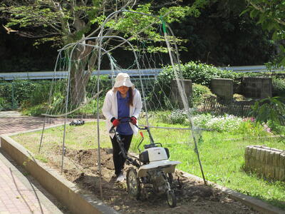 今日は、学校主事の宮崎先生が学級園と理科園を耕運機で耕してくださいました。ゴールデンウィークが明けたら、子どもたちが夏の野菜を植えます。先生は、お花を育てるのが大好きだそうです!とっても力持ちで、草刈りもされますよ~!!