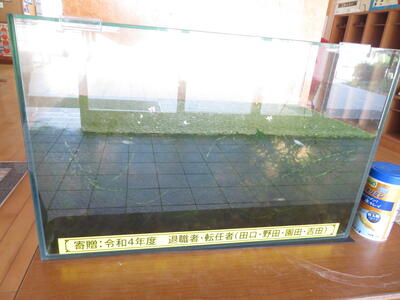 児童玄関では、めだかや植物で子供たちをお迎えします。