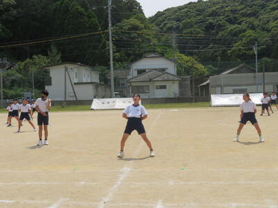 本年度一回目の体力づくりです。今日は集団行動を学びました。