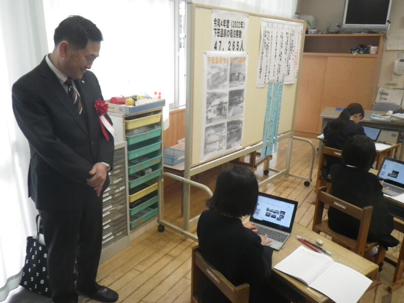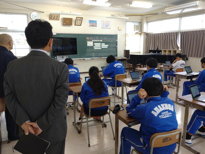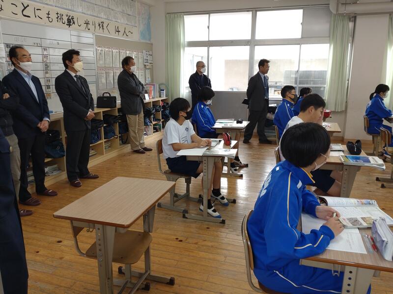 この日は、まず、中学校の授業を参観させていただきました。真剣な態度で学ぶ中学生の姿に感心しました。その後の協議会の中では、熱心な協議をしていただきました。先日の研究発表会での児童・生徒の成長した姿を心から喜んでいただきました。天草小中の児童生徒のことを心から愛し、成長を楽しみにしていただいていることを感じ、身が引き締まる思いでした。たくさんの方々に見守られていることに深く感謝しながら、今後も努力していきたいと思います。