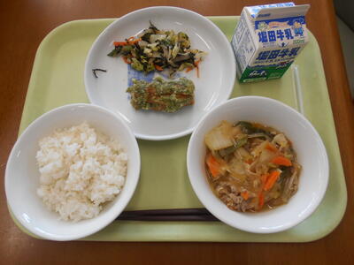 今日の献立は「麦ご飯、親子煮、シャキシャキそぼろ、白菜のおかか和え」でした。私たちは、当たり前のように、温かい給食を食べていますが、毎日のように報道されている能登半島地震で被災された方々の様子を見るたびに当たり前にあったことが当たり前でなくなることの辛さが痛いように伝わってきます。今日もおいしい給食をいただきました。被災された方々に当たり前の日常が一日も早く戻る日を心から願っています。