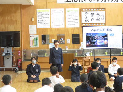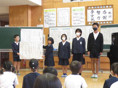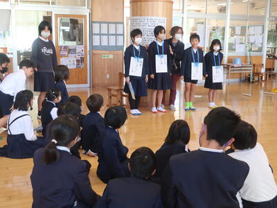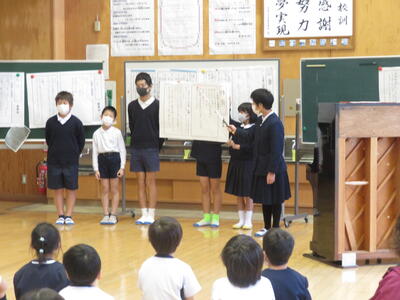 学習面に生活面に頑張ったことを各学年の児童が堂々と発表しました。学校だけでなく、家庭で頑張っていることを発表してくれた児童もいてびっくりしました。
