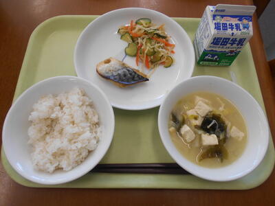今日の献立は『麦ご飯、かき玉汁、イワシの生姜煮、くきワカメのきんぴら』でした。骨まで食べられるほどやわらかく煮込まれたイワシの生姜煮はご飯との相性バッチリ、優しい味のかき玉汁、いろいろな具材と茎ワカメの食感がマッチしたきんぴらと今日も美味しくいただきました。