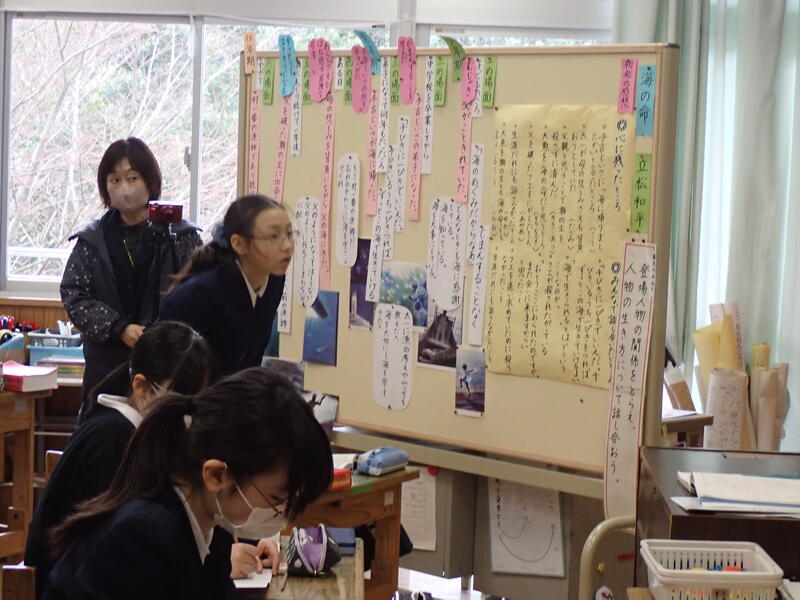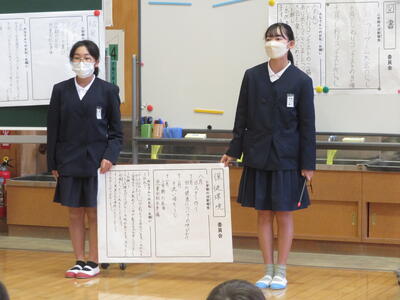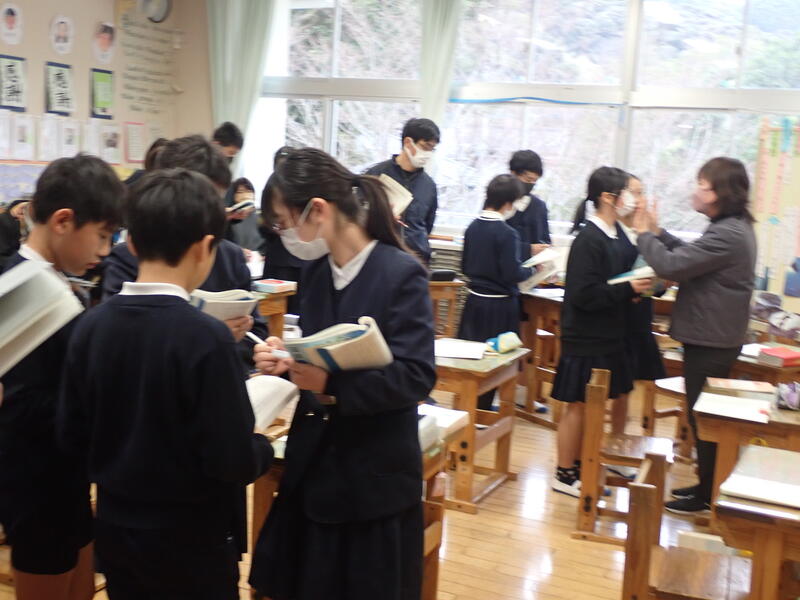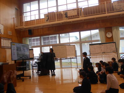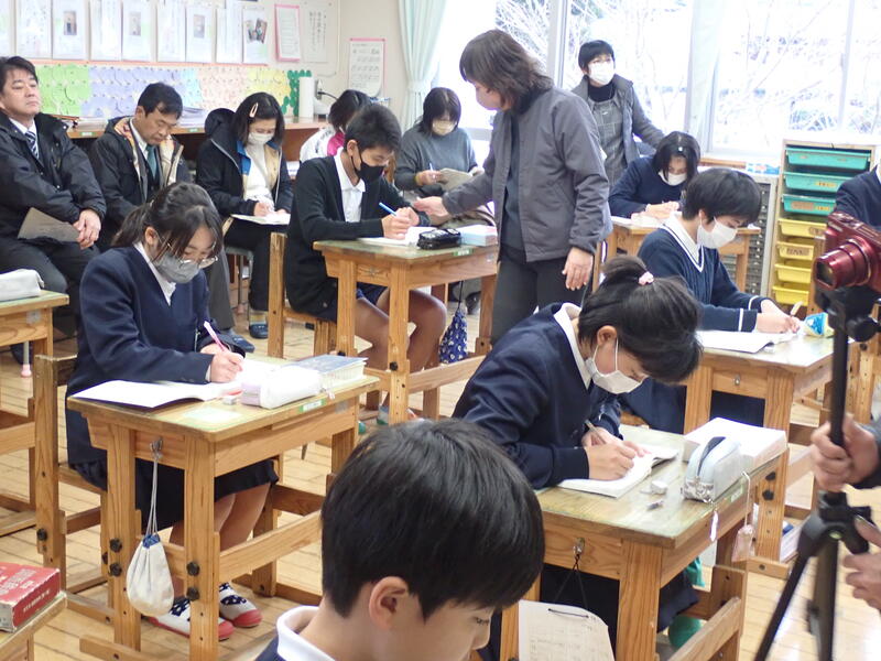 本日は小中合同の研究会です。中学校の先生方も参加し、授業研究会が実施されました。