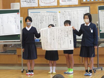 11月24日の天草体験学習研究発表会におきましては、多くのご来賓、先生方、保護者・地域の皆様にご来場いただき、盛会のうちに終了することができました。天草市長の馬場昭治様にもおいでいただき、午前中の授業、午後からの児童生徒発表、記念講演と終日参加していただきました。様々なお声をかけていただくなど、天草小中の研究の成果を感じ、教職員一同大変嬉しく思いました。特に、天草小中合同での体験活動について発表や最後の小中合同による福連木の子守唄の合唱は、来場の方々の心に響いたことと思います。近年、ICTを活用した最先端の研究も盛んに進められ、その素晴らしさも実感していますが、天草体験学習のように子供たちを中心に学校、保護者、地域、行政が連携し、多くの人のつながりの中で学びを充実させていくことの大切さを確認することができました。子どもたちの素晴らしい頑張りに拍手です。ご参観大変有り難うございました。