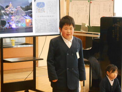 今学期最後の歌声タイムでした。歌声も心もひとつ、美しい響きで歌っています。低学年の児童から美しい声を目指し歌うことができます。今日は4年生3名が全校児童の前で「きよしこの夜」を歌ってくれました。声だけでなく音程がよくて、聴いた児童にとっても癒やし、そして学びの時間となりました。