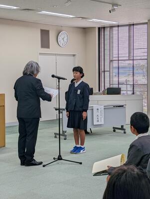 今日は、天草郡市文化展をはじめ毛筆・硬筆・描画を出品した作品展入賞者の表彰式を行いました。素晴らしい作品に仕上げたことに対しての受賞は、本当に誇らしいことです。それから校内では、100冊以上の本を読んだ人の表彰に加え多読書の表彰、そして漢字・計算大会でのダブル満点賞の表彰を行いました。こつこつと努力した児童の皆さんの頑張りが光る2学期でした。