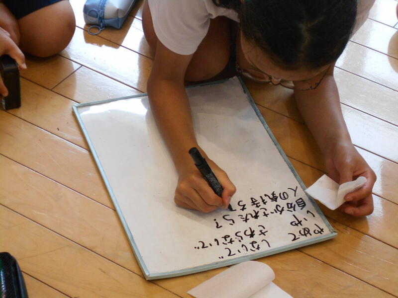 7月4日、1・2年生も、カズヒロ先生と一緒に、色を英語で話す勉強をしました。