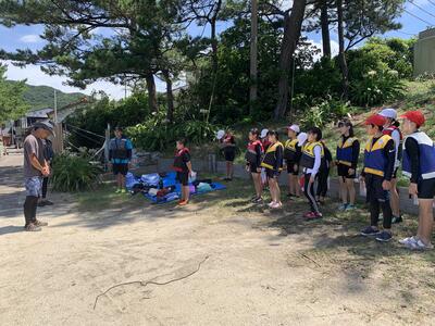 やっと梅雨も上がったかなあと思うような、晴天の中、5年生が白鶴浜でシーカヤックの体験を行いました。