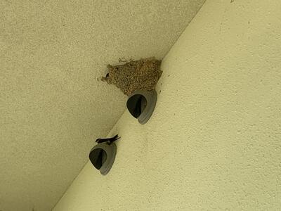本校職員玄関の通路に、このようなツバメの巣が作られています。よくみると、ちょっと巣の形がとっくりのような形をしています。本校職員の話によると、これはコシアカツバメの巣らしく、大変珍しいツバメの種類だそうなんです。「とても貴重なんですよ!」ということでしたので、写真に撮ってみました。2学期が始まっても通路に糞が落ちているので、まだヒナがいるのかもしれません・・・。