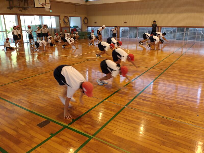 天草小学校では、週に1回程度、朝の天小タイムの時間に「体力づくり」の時間があります。全校児童で「体幹運動」や様々な動きを取り入れた全身運動に取り組んでいます。低学年から、この全身運動をすることで確実に体力の向上につながっています。今月末は、5・6年生は陸上記録会に参加します。天小で鍛え上げてきた体力を生かして、大活躍してくれることと期待しています。