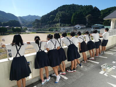 そして、授業が終わったあと突然教室からいなくなった5年生。あれ、どこだ?と思ったら、みんなベランダに出ていました。