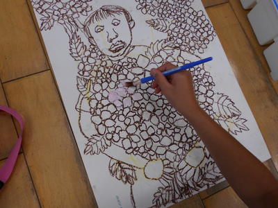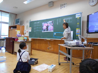 3年生は伊野先生のあじさいの絵の続きを描きました。