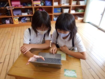 4年生が6年生にタブレットの使い方を教えてもらいました。