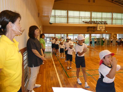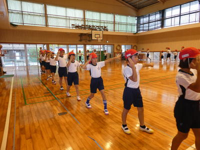 今日は、朝から運動会の全校ダンスの練習がありました。牛深ハイヤです。隊形移動をしました。