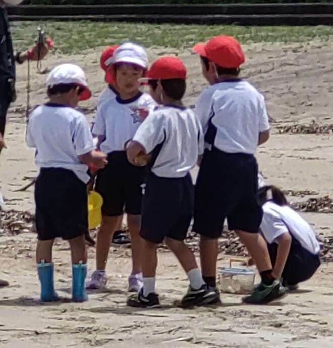 6月26日、梅雨の晴れ間に、1,2年生は白鶴浜に行ってきました。貝殻を拾って見せ合って楽しみました。海遠足に向けて気持ちも高まっています。