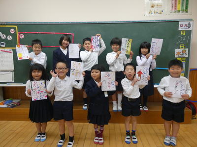 今日もまたまた1年生の登場です。冬休み前最後のショットです。冬休みの楽しみを書きました。