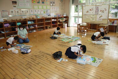 1・2年生の合同体育では、段ボールを積み重ねた的に子供達がボールを当て、倒すゲームをしました。的が倒れると子供達から歓声が上がり、とても楽しそうでした。