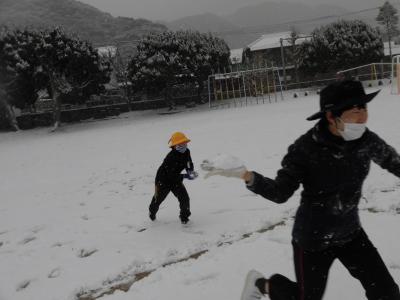 かなり積もったので子供達は朝から雪合戦をしていました。こんなに降るなんて珍しいですね。一面銀世界でした。みんな大はしゃぎ。