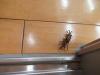 今朝、廊下にカニがいました。ときどき迷い込んできます。