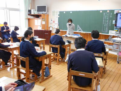 よく手を挙げ、よく話し合い、落ち着いた学習態度に、中学校の先生も褒めておられました。緊張したかもしれませんが頑張った6年生でした。