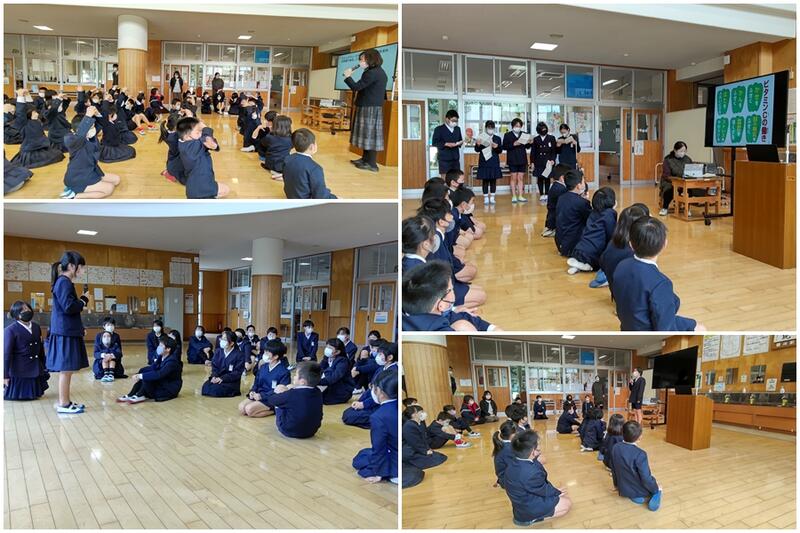 校内給食週間に合わせ、4時間目に給食集会が行われました。校長先生のお話やクイズ、給食委員会の電子紙芝居、感想発表が行われたあと各教室にもどり給食センターの方への感謝の手紙を書きました。