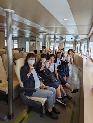 六年生全員元気に長崎に出発しました。鬼池港に着き、出発式を行いました。