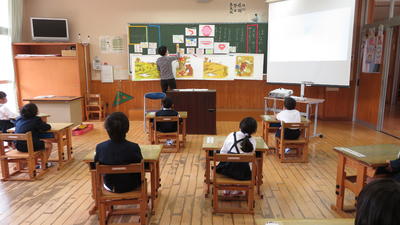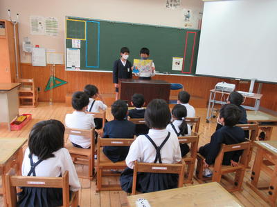 1年生の教室には、朝から6年生が読み聞かせに来てくれています。頼もしい6年生です。