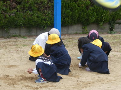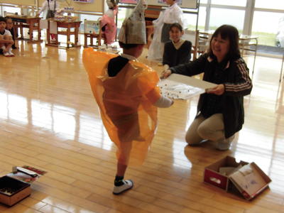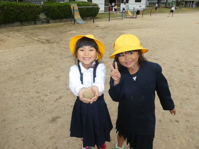 こちらは4年生。イチョウの落ち葉を帽子の中に入れてドッジボールをしたとか…。どうやってするのでしょうね。