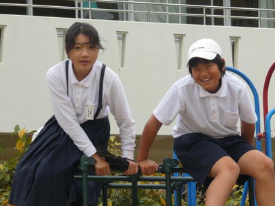 ジャングルジムにのぼる6年生。明日から修学旅行ですね。気をつけて行ってきてください。たくさん学んできてくださいね。