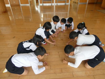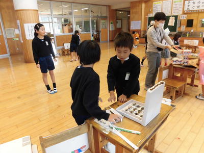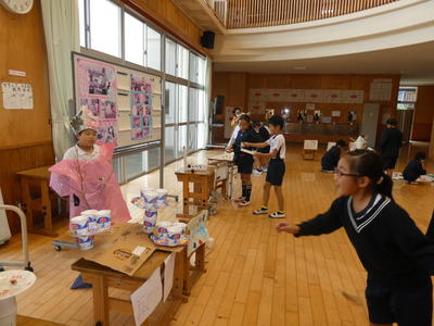 今日は、1年生の秋祭りに2,3年生を招待して一緒に遊びました。