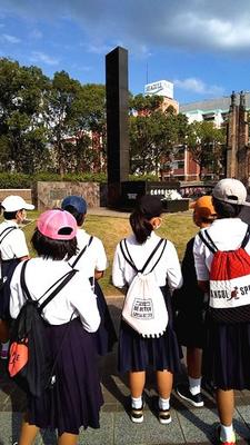 平和記念公園で平和集会も無事終えました。6年生の合唱にバスガイドさんもとても感動されたとのことで花丸をもらいました。現在ホテルに向かって移動中です。全員元気です。